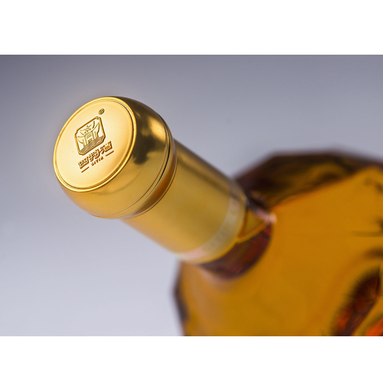 豐滿、圓潤的酒體,入口醇厚不失細膩,回味柔和不失雋永,一觸之間,幽然特香回味無盡。金黃色的多面菱形紋理瓶身,既中正雅致又時尚有質感,恰到好處平衡了傳統白酒的“成熟穩重”感與現代簡約風格。
