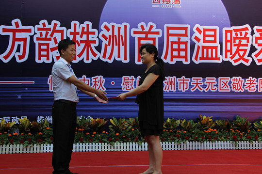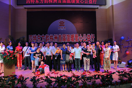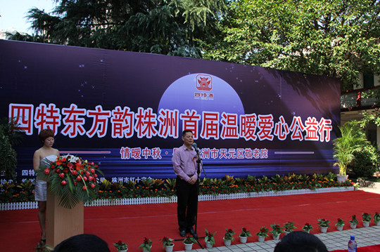 當(dāng)天上午10點(diǎn),在一段溫馨音樂中,“四特東方韻(株洲)首屆溫暖愛心公益行”首先在天元區(qū)敬老院拉開了帷幕。株洲市副市長(zhǎng)李異建,市民政局局長(zhǎng)馬民杰,紅十字會(huì)會(huì)長(zhǎng)張麗巖等人一同來到現(xiàn)場(chǎng),并與敬老院的老人們一起觀看精彩的文藝演出。下午,“四特東方韻(株洲)首屆溫暖愛心公益行”,又在株洲市福利院展開。主辦方給孩子們帶去了洗漱用品、學(xué)習(xí)用品、月餅及心理咨詢室設(shè)備。那一張張洋溢著燦爛的笑容表達(dá)了他們的心情,現(xiàn)場(chǎng)不僅有藝術(shù)團(tuán)表演,還有福利院小朋友自己的表演……